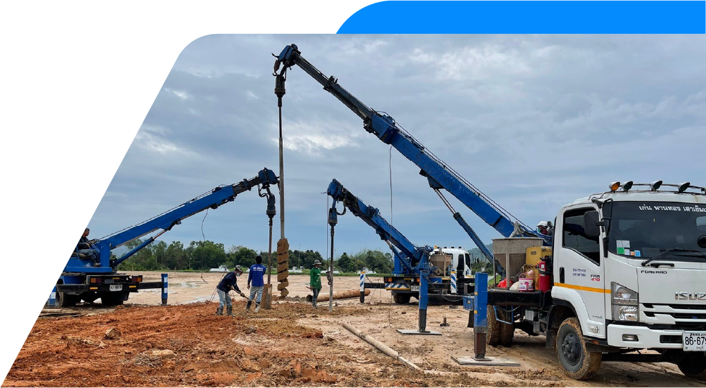 ในส่วนของงาน เสาเข็มเจาะ เรามีทั้งเครื่องจักรขนาดใหญ่และขนาดเล็ก รองรับพื้นที่แคบหรือโครงการที่ต้องการความละเอียดสูง เช่น งานในตัวเมือง อาคารสูง หรือพื้นที่ที่มีข้อจำกัดด้านการสั่นสะเทือน งานเจาะเสาเข็มของเราจึงเหมาะกับทั้งโครงการใหม่และงานปรับปรุงฐานราก